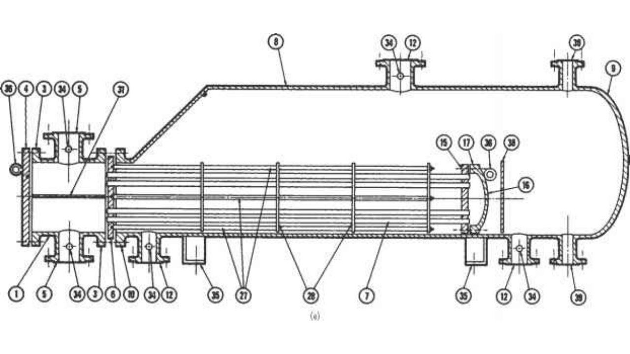 The latent heat of the vaporizing medium (steam) is utilized in vaporizing the liquid on the shell side. K Shell design provides sufficient space to separate the vaporized liquid and vapor. The vaporized liquid flows out from the top of the shell.