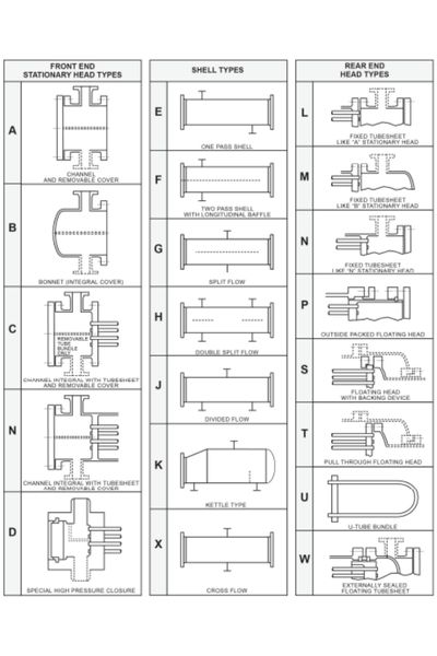 Shell and tube exchanger types standardized according to TEMA are as follows.