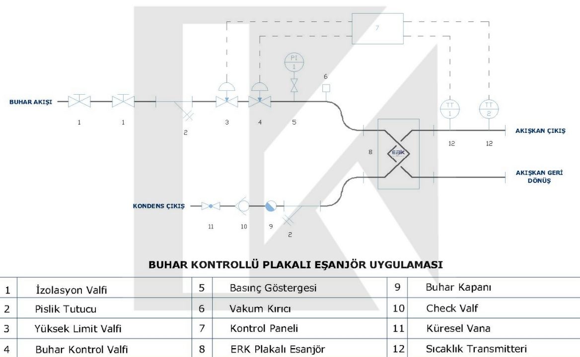 Buhar ile ısıtma eşanjörleri, buharın kullanım suyu, ısıtma suyu veya diğer sıvıları ısıtması için kullanılan ekipmanlardır. Buhar, plakalı eşanjör aracılığı ile sıcaklık farkından yararlanılarak enerjisini diğer sıvılara aktarabilmektedir. Buhar ile ısıtma eşanjörleri, birçok endüstriyel uygulamada kullanılır. Özellikle, fabrikalarda, sanayi tesislerinde, enerji santrallerinde ve gemilerde sıklıkla kullanılır. Ayrıca, bazı binalarda da ısıtma amaçlı kullanılabilir.